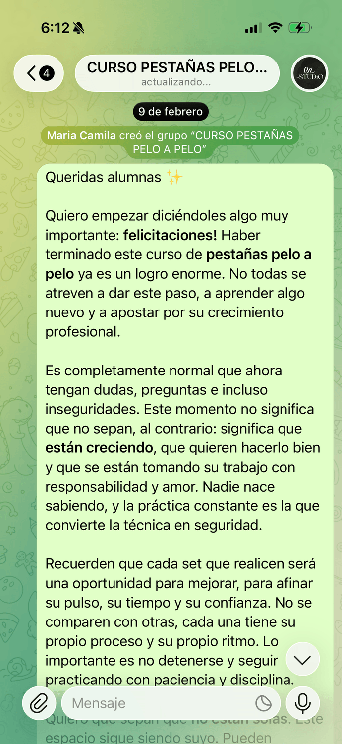 “He comprado otros cursos y ninguno es tan completo como este. Aquí no solo aprendes a poner pestañas, aprendes TODO: desde bioseguridad hasta marketing para conseguir clientas. Vale muchísimo más de lo que cuesta.”